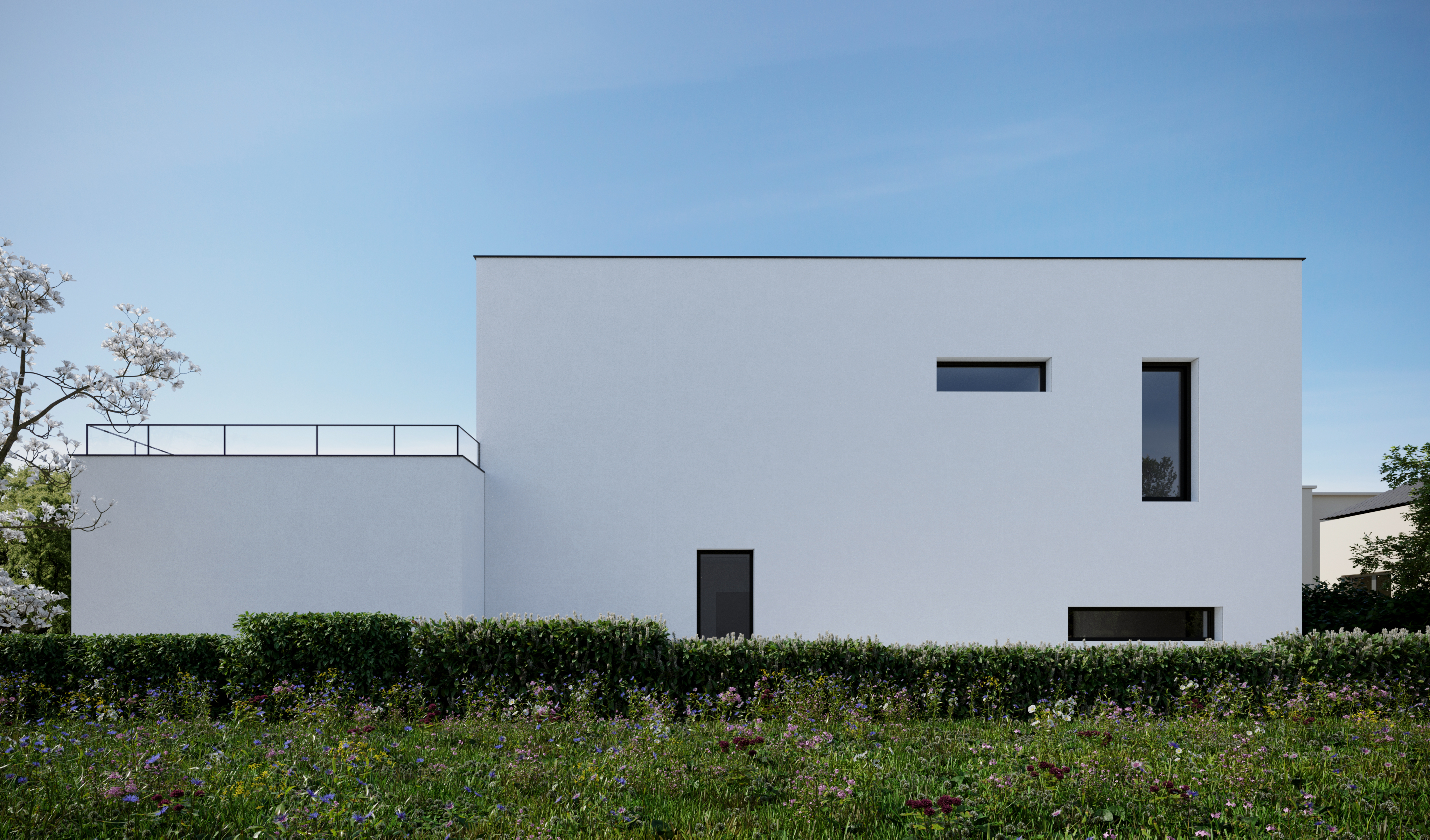 Był to projekt domu jednorodzinnego, w którym po raz pierwszy świadomie przeprowadziłam cały proces projektowy w oparciu o zasady budownictwa pasywnego — od analizy działki, przez bryłę, aż po detale techniczne.